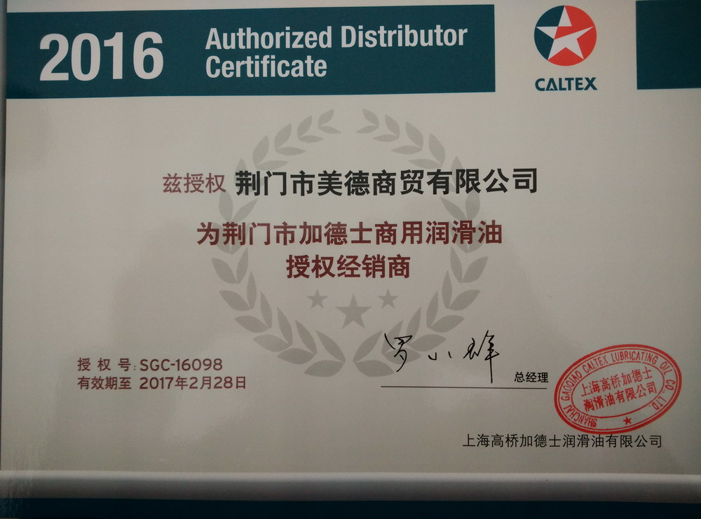 美孚潤(rùn)滑油授權(quán)書(shū)